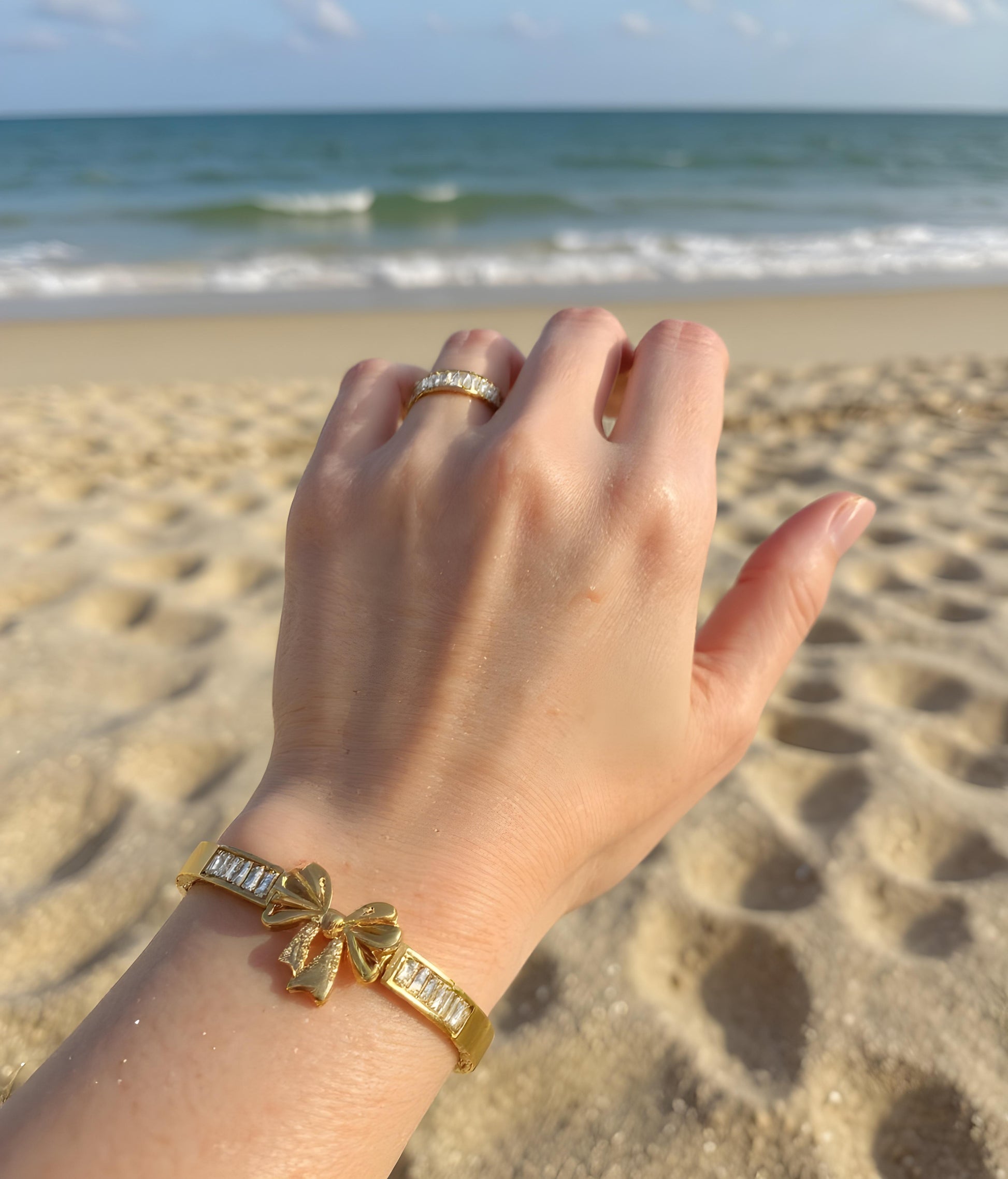Our jewelry is crafted with love and care — made from Stainless steel that’s waterproof, anti-tarnish, and hypoallergenic for your everyday shine.